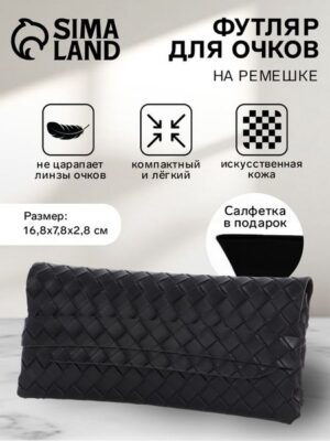 Футляр для очков — стильное и функциональное решение для каждой женщины. Изготовлен из искусственной кожи, выполнен в практичном черном цвете. Его длина 16,8 см, а ширина 7,8 см делают его идеальным для хранения различных видов очков. Он оснащен застежкой в виде ремешка, обеспечивающей удобство в использовании и надежную защиту вашего аксессуара. Данный футляр имеет мягкий корпус, идеально подходящий для ежедневного использования.Преимущества Эргономичный дизайн для комфортного хранения. Долговечность благодаря качественным материалам — искусственная кожа устойчива к износу. Легкий ремешок обеспечивает удобный доступ к очкам. Универсальность — подходит для различных моделей очков, от солнцезащитных до оптических. Компактность — удобно помещается в дамскую сумочку или рюкзак. Защищает от пыли и царапин благодаря мягкому внутреннему покрытию. Идеально подходит для путешествий благодаря небольшим габаритам и легкости. Футляр для очков — ваш надежный спутник в повседневной жизни. Легкий, экономичный и практичный, он станет незаменимым аксессуаром для каждой женщины. Оцените отличное сочетание качества и цены, выбирайте разумно и экономьте с комфортом. Делайте ваш выбор сегодня и наслаждайтесь удобством завтра!