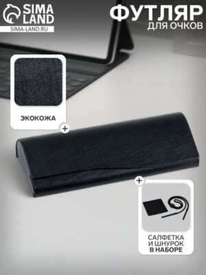Футляр для очков, шнурок, салфетка, набор, экокожа, черный. Набор аксессуаров для очков — незаменимая вещь для каждого человека. Твердый футляр из экокожи прекрасно подойдет для хранения оправ, солнцезащитных или водительских очков. Защитит ваши очки от механических повреждений. Салфетка из микрофибры, которая позволит ухаживать за вашими очками, очищать от различных загрязнений. Шнурок, благодаря которому очки не потеряются.
