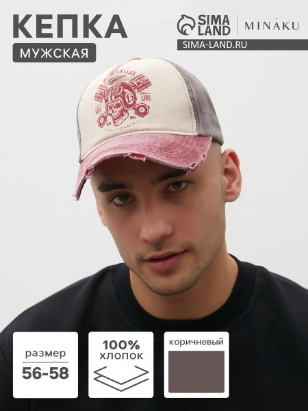 Главная » Аксессуары Кепка Просмотров 6 Кепка мужская MINAKU "Motorcycler", цвет коричневый, размер 56-58. MINAKU