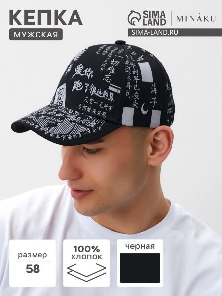Кепка мужская MINAKU "Иероглиф", цвет черный, р-р 58.
