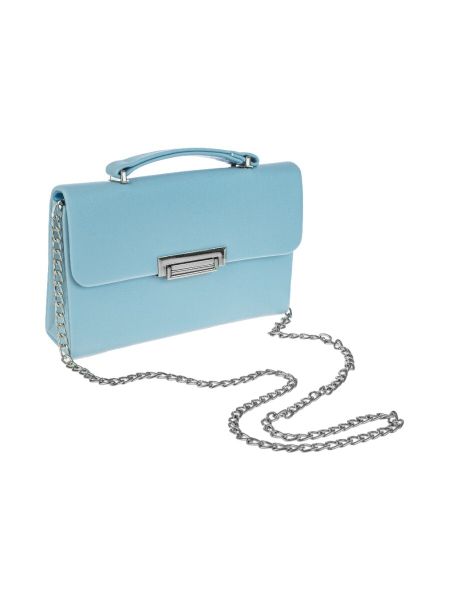 Классический клатч из искусственной кожи нежно-голубого цвета с серебристой фурнитурой. Одно общее отделение закрывается на продолговатую горизонтальную защелку, выполняющую также декоративную функцию. В комплект входит съемная серебристая цепь. Однотонный клатч без лишних декоративных элементов может стать отличной универсальной вещью в женском гардеробе, он отлично смотрятся с вечерним нарядом или со строгим деловым. Будет великолепно гармонировать со стильным ремнем такого же цвета и фактуры.