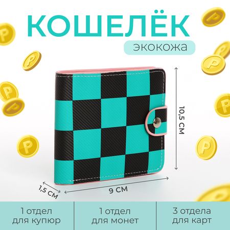 Кошелёк на кнопке, цвет зелёный/чёрный