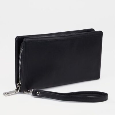 Кошелёк женский на молнии с ремешком, цвет чёрный