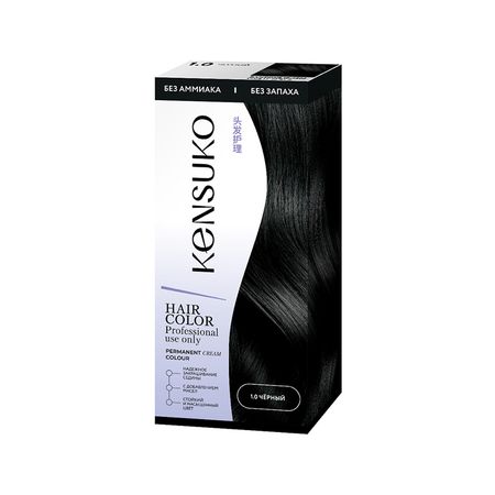 Краска для волос KENSUKO тон 1.0 черный не содержит аммиак, глубоко проникает внутрь волоса, питает его и наполняет насыщенным цветом. Краска для волос обеспечивает 100% закрашивание седины. Входящие в состав масло ши и гель алоэ вера интенсивно питают, восстанавливают, придают гладкость и эластичность локонам. Бальзам-кондиционер великолепно завершает процедуру окрашивания: закрепляет цвет, увлажняет и укрепляет, делает волосы гладкими и шелковистыми. Упаковка содержит: пакет-саше с крем-краской, пакет-саше с проявляющей эмульсией 2 шт., пакет-саше с бальзамом для волос, перчатки, инструкцию по применению.