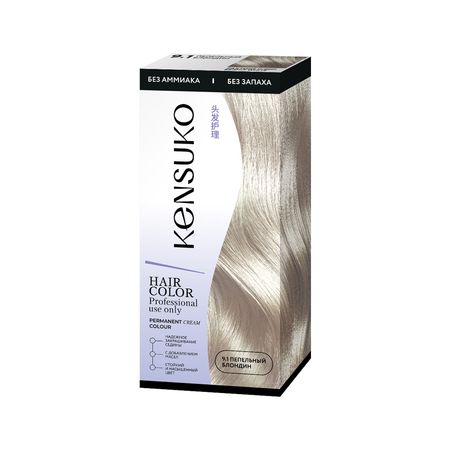 Краска для волос KENSUKO KENSUKO тон 9.1 пепельный блондин не содержит аммиак, глубоко проникает внутрь волоса, питает его и наполняет насыщенным цветом. Краска для волос обеспечивает 100% закрашивание седины. Входящие в составмасло жасмина и экстракт лотоса интенсивно питают, восстанавливают, придают гладкость и эластичность локонам. Бальзам-кондиционер великолепно завершает процедуру окрашивания: закрепляет цвет, увлажняет и укрепляет, делает волосы гладкими и шелковистыми. Упаковка содержит: пакет-саше с крем-краской, пакет-саше с проявляющей эмульсией 2 шт., пакет-саше с бальзамом для волос, перчатки, инструкцию по применению.