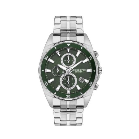 The LEE COOPER Mens Multi Function Green Dial Watch LC07515.370 is a stylish and functional timepiece that is perfect for any mans wardrobe. This watch features a 44mm stainless steel case with a vibrant green dial, giving it a unique and eye-catching look.The dial is made in such a way that you can always see the time on it, its shape is comfortable, elegant and pleasing to your eye. Not only does this watch look stylish, but it also offers reliable timekeeping with its precise movement. It also has a water resistance, making it suitable for everyday wear. The bracelet will sit nicely on your wrist and perfectly complement your watch, highlighting your sense of taste. The Watch is designed with both fashion and functionality in mind. They has a scratch-resistant mineral glass to protect the dial from any accidental damage. This watch is perfect for you who appreciate luxury and quality. It comes in a beautiful package, making it an ideal gift for yourself or a loved one. Elevate your style with this Watch.