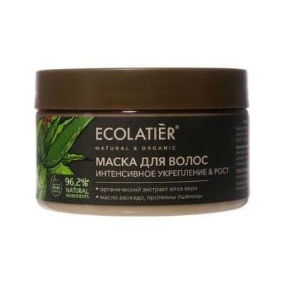 Маска для волос ECOLATIER® Organic Aloe Vera питает корни, восстанавливает структуру волос по всей длине, придает им изумительный блеск и здоровый вид.br /Соответствует требованиям Vegan Society Великобритания. Продукт содержит более 97% ингредиентов растительного происхождения.br /Масло авокадо глубоко питает волосы и увлажняет кожу головы, предотвращает сухость и раздражение.br /Протеины пшеницы проникают в структуру каждого волоса, устраняют пористость и эффективно восстанавливают поврежденные волосы. Протеины легко удерживают влагу в волосах и коже, защищают от пересушивания, дают прикорневой объем, облегчают укладку.