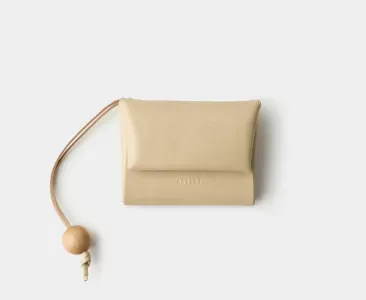 Эффектное мини-портмоне из лаковой натуральной кожи со скрытым магнитом. Внутри — отделение для карт и мелочи на молнии. Портмоне можно носить на запястье с помощью кожаного шнурка с деревянной бусино