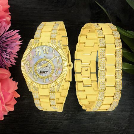 MOONBEAM WATCH SET Gold Watch & Bracelet Set, bedazzling exquisite watch — Fully Iced