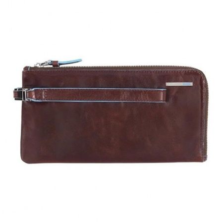 Коллекция Blue Square изготовлена из дубленой телячьей кожи. Традиционный метод дубления сохраняет красоту кожи на протяжении многих лет. Необработанные края реза, окрашенные вручную в голубой цвет, оживляют деловой характер коллекции и являются ее отличительным и узнаваемым элементом. Мультипортмоне на молнии из коллекции Blue Square имеет одно главное отделение на молнии, а также заднее отделение на молнии. В главном отделении есть боковые отделения для банкнот, 12 слотов для кредитных и банковских карт. Портмоне оснащается удобным кожаным ремешком для ношения на запястье.