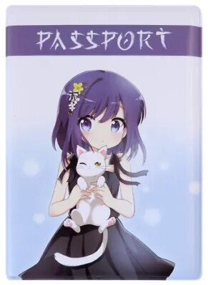Обложка для паспорта Аниме Девушка с белым котиком (Сёдзё) (цветная) (ПВХ бокс)