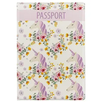 Обложка для паспорта Единороги с цветами (ОП2017-175)