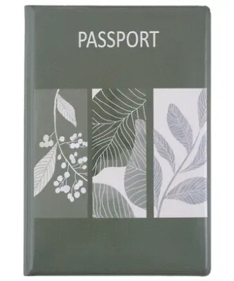 Обложка сделана из прочного ПВХ серо-зелёного цвета. Также есть качественная печать — минималистичные рисунки веточек и листов в одном стиле. Аксессуар подойдёт для паспортов РФ и стран СНГ: документ будет под защитой от влаги, пыли и мелких повреждений.