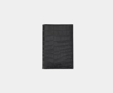 Лаконичная и яркая обложка для паспорта из натуральной кожи с фактурой крокодила. Практичный аксессуар защитит ваши документы благодаря двум пластиковым карманам, а билеты в теплые страны легко помест