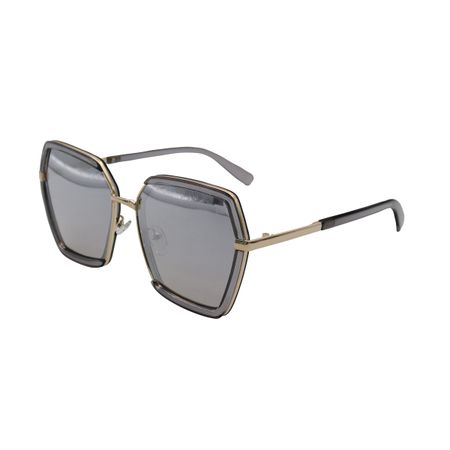 Солнцезащитные очки для яркого имиджевого эффекта. Крупная форма пластиковой оправы подходит к любой форме лица. Комбинированная оправа изготовлена из золотистого металла и прозрачного серого пластика, стекла серые, дужки металлические с пластиковыми заушниками. Фактор УФ-защиты 400. В подарок- мягкий чехол из микрофибры, защищающий от механических повреждений. Может быть использован в качестве салфетки для протирки очков.