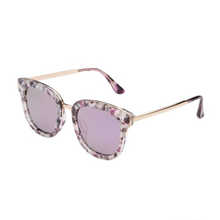 Неординарные солнцезащитные очки из пластика с интересным розово-серым принтом на оправе. Линзы изготовлены из поликарбоната с защитой от ультрафиолетовых лучей, стекла розовые зеркальные, дужки из золотистого металла с заушниками в цвет оправы. Дизайн очков вдохновлен культурой рейвов и крупного города. Подойдет для уверенных стильных девушек, которые не боятся экспериментировать с образами и всегда в тренде. Фактор УФ-защиты 400. В подарок- мягкий чехол из микрофибры, защищающий от механических повреждений. Может быть использован в качестве салфетки для протирки очков.