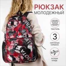 Рюкзак школьный, на молнии, с карманами, с принтом