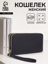 Кошелёк женский на молниях с ремешком, цвет чёрный