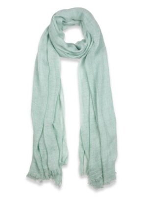 Стильный, модный однотонный палантин из вискозы с добавлением льна и хлопка с меланжевой окраской мятного цвета, декорирован нежной короткой бахромой –«ресничками» по торцевым сторонам. Благодаря сочетанию разных фактур плетения полотна легко и красиво драпируется, придавая индивидуальности и уникальности своей обладательнице. Такой универсальный аксессуар необходимая часть гардероба, позволяющая подчеркнуть стиль, имидж и даже настроение женщины. Он подойдет практически к любому весеннему или летнему образу и сделает его более выразительным, стильным и ярким. Такой аксессуар является универсальным и гармонично впишется как в классический стиль, так и в стиль Casual, и в более раскрепощенный молодежный стиль. Его можно носить как головной убор, использовать как украшение для волос, носить на шее, и даже на отдыхе в качестве парео. Вы будете выглядеть стильно и ярко, используя в своем образе палантин от Модных историй.