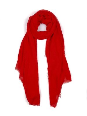 Легкий однотонный палантин из хлопка и вискозы с эффектом крэш ярко-красного цвета, декорирован бахромой по периметру, благодаря объемной структуре, легко и красиво драпируется. Универсальный аксессуар подойдет практически к любому весеннему или летнему образу и сделает его более выразительным, стильным и ярким.