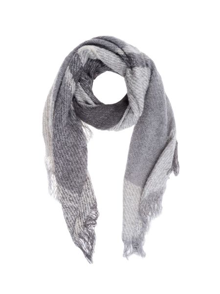 Невесомый палантин классической расцветки с длинной бахромой отлично сочетается и с пуховиками, и с пальто. Аксессуар легко драпируется и не менее красиво смотрится со свободно опущенными концами. На торцевых краях палантин украшен длинной бахромой, а прошитые по всему полотну серебристые люрексовые нити придают ему утонченности и легкости.