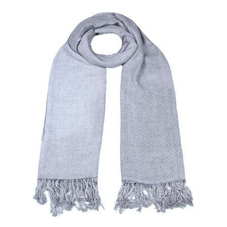 Объемный вискозный палантин антрацитово-серого цвета выполнен методом ручного окрашивания и имеет жатую текстуру "гофре". По торцевым сторонам украшен воздушной жатой бахромой, придающей изысканности аксессуару.
