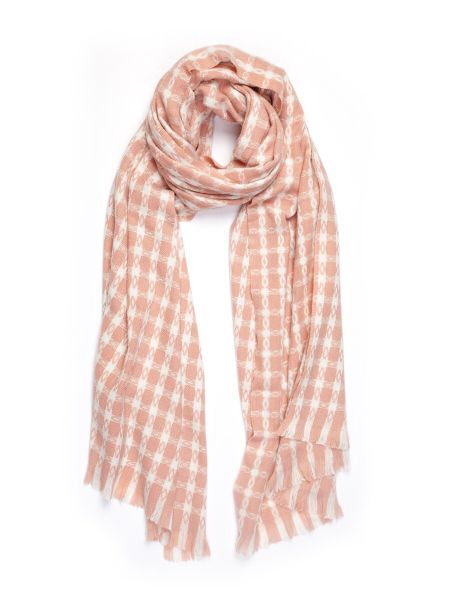 Стильный дизайнерский мягкий, теплый и невесомый палантин нежно-розового цвета с необычным клетчатым орнаментом, декорирован короткой пушистой бахромой. Великолепно дополнит любой образ и будет согревать в холода. Легко составляет комплект с однотонными вещами и другими аксессуарами. Такой универсальный аксессуар необходимая часть гардероба, позволяющая подчеркнуть стиль, имидж и даже настроение женщины. Он подойдет практически к любому образу и сделает его более выразительным, стильным и ярким. Такой аксессуар гармонично впишется как в классический стиль, в стиль Casual или в более раскрепощенный молодежный образ. Состав: 30% шерсть, 70% вискоза.