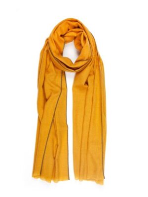 Теплый уютный палантин ярко-желтого цвета с гладкой приятной фактурой выполнен из шерсти и вискозы. Гармоничное сочетание этого аксессуара с одеждой позволит добиться завершенного образа. Модель декорирована по краям тонкой полосой контрастного цвета, а на концах изделия — недлинной пушистой бахромой. Мягко завязанный на шее или наброшенный на плечи, этот палантин привлечет внимание окружающих к Вашему образу, а также согреет в зимнюю непогоду. Может сочетаться с текстильными перчатками аналогичного цвета. Состав: 30% шерсть, 70% вискоза.