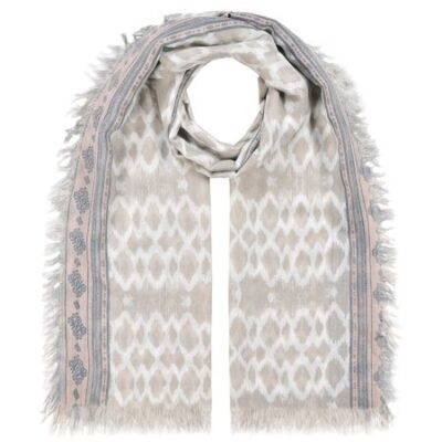 Чудесный палантин с натуральным хлопком в составе. Трендовый звериный принт легко и просто драпируется. По краям декорирован бахромой. С двух сторон контрастный кант.