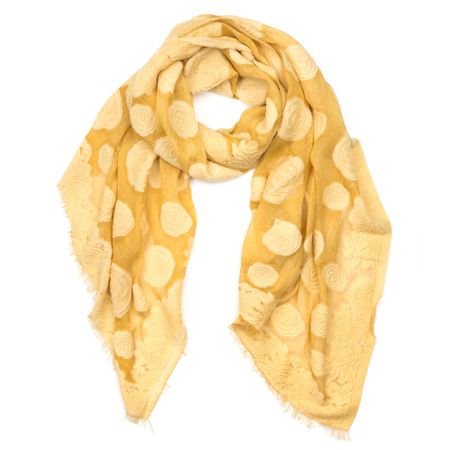 Стильный однотонный палантин шафранового цвета с составом полиэстер/хлопок — интересный и освежающий аксессуар для весеннего сезона. Выполнен в технике деворе, за счет которой приобрел уникальный рисунок — нежные розы по полупрозрачному полю. Декорирован короткой бахромой по краям. Легко драпируется. Палантин поможет усилить акцент в романтическом образе, аксессуар легко сочетается с весенне-летним гардеробом: шортами, туниками, футболками. Рекомендации по уходу: ручная стирка.