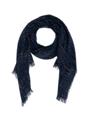 Элегантный нежный палантин выполнен в технике a-la Channel с добавлением люрексовых и буклированных нитей — для блеска и объема. По краям украшен воздушной бахромой. Благодаря шерстяным волокнам отлично защитит от осенней непогоды. Эффектно сочетается с верхней одеждой, а также плотными тканями пиджаков, кардиганов, свитеров, бомберов. Модным палантином синего цвета вы можете дополнить практически любой осенний образ.