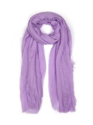 Легкий однотонный палантин из хлопка и вискозы с эффектом крэш нежно-сиреневого цвета, декорирован бахромой по периметру, благодаря объемной структуре, легко и красиво драпируется. Универсальный аксессуар подойдет практически к любому весеннему или летнему образу и сделает его более выразительным, стильным и ярким.
