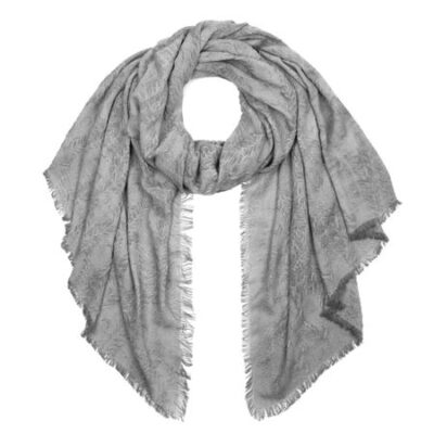 Изысканный и приятный на ощупь палантин замечательно сочетается с базовой осенней верхней одеждой и легко комбинируется с другими аксессуарами. Дизайнерский узор флоральных мотивов воплощает образ музы художника, нежной и артистичной одновременно. Графичный фон окаймлен короткой бахромой для создания романтичного настроения.