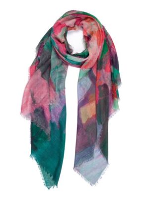 Стильный яркий палантин создан специально для добавления сочных красок в базовый гардероб. Микс солнечных и тропических оттенков способен зарядить энергией и бодростью, моментально выделяя вас из толпы! Такой аксессуар является универсальным, так как подходит к любому образу, делая его более ярким и стильным. Изделие декорировано короткой бахромой по краям.