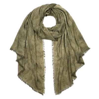 Изысканный и приятный на ощупь палантин замечательно сочетается с базовой осенней верхней одеждой и легко комбинируется с другими аксессуарами. Дизайнерский узор флоральных мотивов воплощает образ музы художника, нежной и артистичной одновременно. Красивый фон цитрусового цвета окаймлен короткой бахромой для создания романтичного настроения.