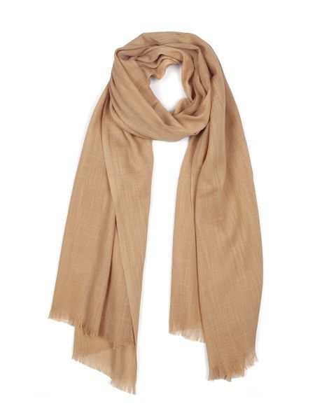 Легкий однотонный палантин из вискозы с хлопком благородного бежевого оттенка. По торцевым сторонам декорирован короткой бахромой. Благодаря своей структуре и определенному способу плетения нитей, имитирующему внешний вид ткани из натурального льна, изделие легко и красиво драпируется. Такой аксессуар является универсальным, так как подходит к любому образу, делая его более ярким и стильным.