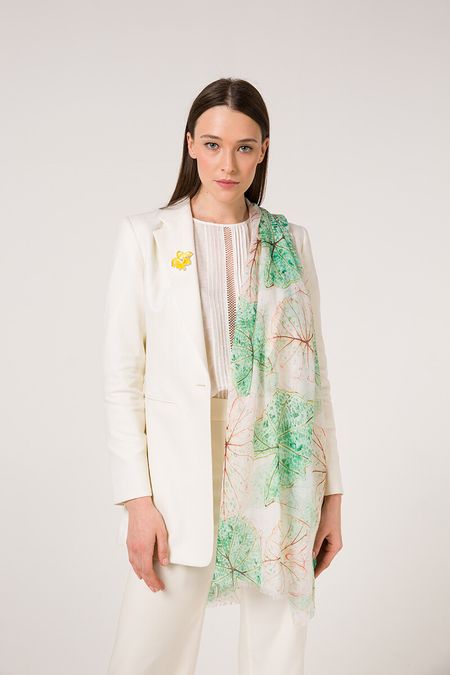 Воздушный палантин из вискозы и хлопка с растительным принтом в акварельном стиле. Как будто сама природа сотворила этот удивительный палантин! Рисунок, олицетворяющий природную красоту листьев лотоса, придется по вкусу нежным и утонченным натурам. Вы можете повязать его на шею или накинуть на плечи — фантазируйте. Материал легко драпируется.