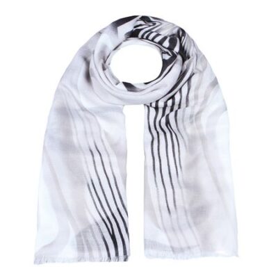 Эффектный женский палантин с абстрактным узором. Выполнен в технике "деграде". Стилизованный рисунок выигрышно акцентирует внимание на шее и декольте. Аксессуар отлично подойдет под любой наряд.