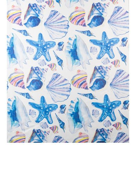 Мягкий палантин из качественной вискозы с хлопком с фантазийным принтом. Принт изделия в морском стиле с изображением морских звезд и ракушек подарит своей обладательнице ощущение отпуска на побережье океана. Приятный на ощупь материал просто и красиво драпируется. Стильно смотрится небрежно накинутым на плечи или свернутым по диагонали вокруг шеи.