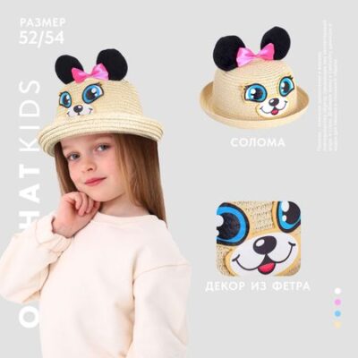 Панама детская соломенная для девочки «Мышка», с ушками,, р-р 52-54, 2-6 лет. Детский головной убор уже давно стал не только средством защиты от солнышка, но и модным аксессуаром. Панамка подчеркнет индивидуальный стиль маленькой модницы и дополнит ее образ. Калейдоскоп красок не оставит равнодушным ни одного привереду. Простота в уходе делает шляпку отличным вариантом для повседневной носки. Пусть каждый день приносит радость и комфорт вашим юным первооткрывателям!