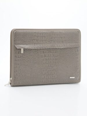 Распашная папка закрывается на круговую молнию с двумя молниеводителями. Внутри по одной половине карман для бумаг и блокнот. На другой половине объемный карман на кнопке с двумя отделениями. На кармане прорезной карман на молнии и 3 маленьких кармашка. Снаружи спереди врезной карман на молнии.Материал: Натуральная кожа , Размер: 340x250x30