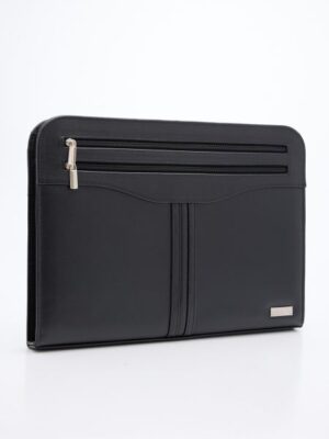 Папка имеет два отделения.Внутри на задней стенке карман на молнии.Имеется средний карман на молнии, открытый карман и карманы для канцелярии. На наружной передней стенке два кармана на молнии,на задней наружной стенке карман на молнии.Папка закрывается на молнию. Имеется ручка-петля. Материал: Натуральная кожа Каталония. Кожа эластичная с естественной лицевой поверхностью с полиуретановым покрытием., Размер: 385x275x35