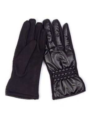 Мягкие, теплые текстильные женские перчатки , защищены блестящим непромокаемым слоем на тыльной части. Классический черный цвет подойтет к большинству современных образов. Благодаря декору в виде резинки на запястье, перчатка будет хорошо сидеть и аккуратно смотреться на руке. Незаменимый аксессуар согреет свою обладательницу в любую погоду.