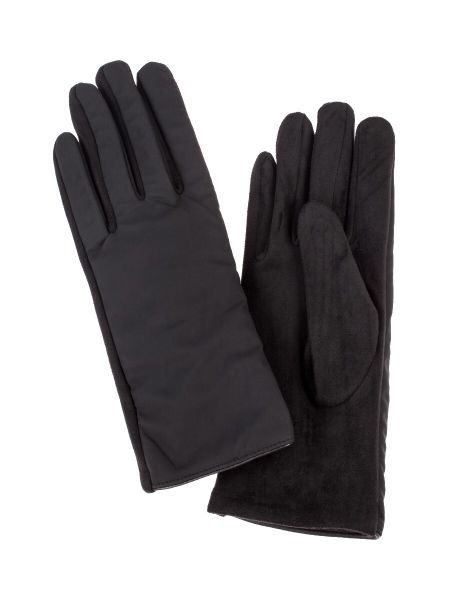 Мягкие, теплые текстильные женские перчатки , защищены с внешней стороны непромокаемым слоем из нейлона. Универсальный черный цвет подойдет к большинству современных образов. Незаменимый аксессуар согреет свою обладательницу в любую погоду.