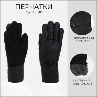 Перчатки мужские, безразмерные, с утеплителем, цвет чёрный