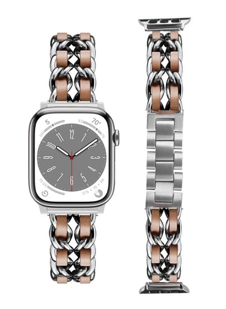 The Perfii Chain Leather Replacement Band is a stylish and versatile accessory for your Apple Watch. Designed to fit the 41, 40, 38 mm Series 8 7 6 5 SE 4 3 models, this band is perfect for those who want to add a touch of elegance to their smartwatch. Made with high-quality leather and a chain link design, it offers a comfortable and secure fit. Whether you are going for a casual or formal look, this band is sure to elevate your style. With its easy installation and adjustable length, you can customize the fit to suit your wrist perfectly. Upgrade your Apple Watch with the Perfii Chain Leather Replacement Band and showcase your fashion-forward sense of style.
