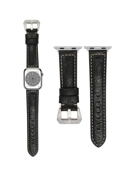 Perfii Engraved Tattoo Genuine Leather Replacement Band For Apple Watch 41, 40, 38 mm Series 8 7 6 5 4 SE