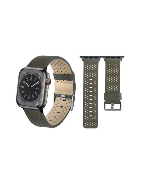 The Perfii Genuine Leather Replacement Band is designed specifically for the Apple Watch Series 8, 7, 6, 5, 4, and SE models in 41mm, 40mm, and 38mm sizes. It is made from high-quality genuine leather, which offers durability and comfort for everyday use. The band features a classic and stylish design, making it suitable for both casual and formal occasions. It has a stainless steel buckle closure that ensures a secure fit and prevents the watch from falling off your wrist.
