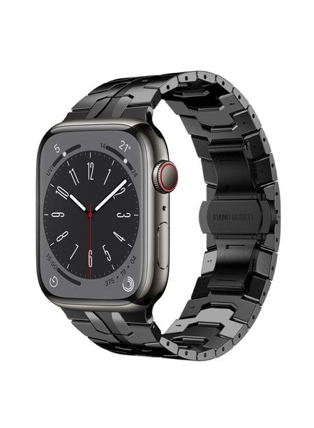Perfii Stainless Steel Caterpillar Link Replacement Band for Apple Watch 49, 45, 44, 42 mm Series Ultra 8 7 6 SE 5 4 3