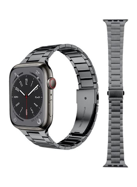 Perfii Stainless Steel Slim Triple Perfii Stainless Steel Slim Triple Link Replacement Band for Apple Watch 49, 45, 44, 42 mm Series Ultra 8 7 6 SE 5